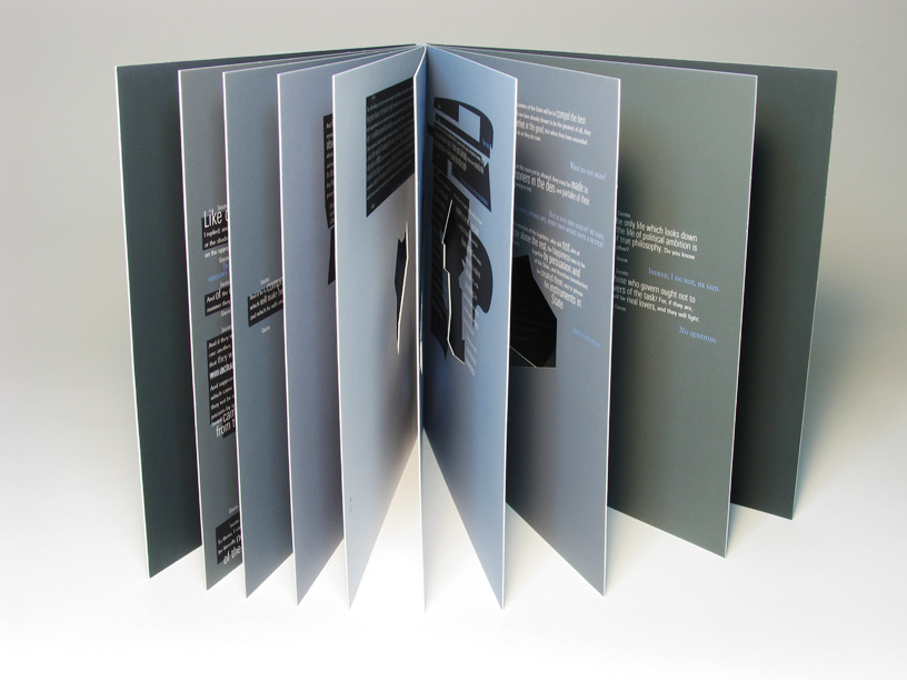 Von dunklen Anfangsseiten sieht man durch irregulär geformte Löcher die nächsten Seiten heller werden.